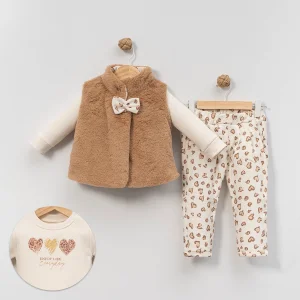 KIZ 9-12-18 AY KÜRK YELEKLİ 3LÜ TAKIM