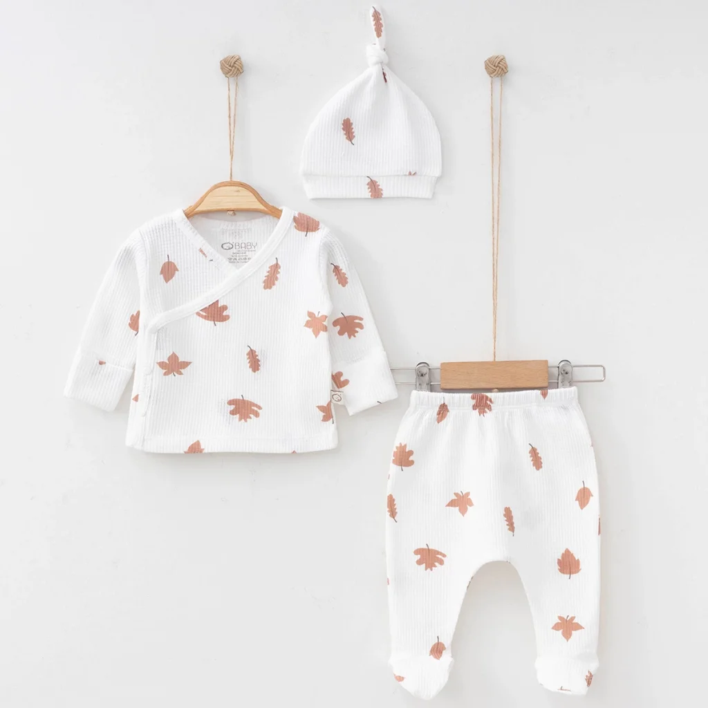 UNISEX 0-3 AY YAPRAK BASKILI WAFFLE 3LÜ SET